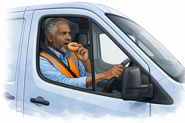 A driver who eats at the wheel because they have no other option is a scheduling problem, not just a behaviour problem.